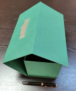 The color and texture of wrapping paper can be chosen from a selection of special papers and enriched by embossing, foil stamping, screen printing. The pictures shown are our models, but we can fully customize, according to the customers’ requirement.